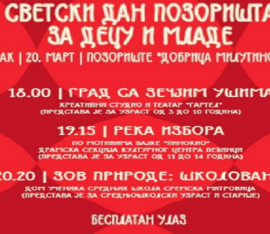Tri besplatne predstve za Svetski dan pozorišta za decu i mlade