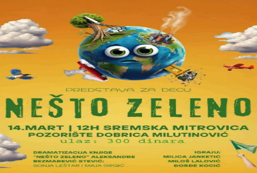 Ekološka predstava za decu pod nazivom „NEŠTO ZELENO“ odigraće se u mitrovačkom pozorištu „Dobrica Milutinović“ u subotu, 14. marta, sa početkom od 12 časova.