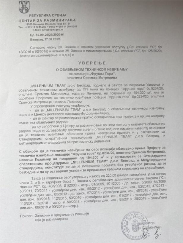 Prema navodima u tekstu objavljenom na Nova.rs iznete su tvrdnje o postojanju mina, koje su u suprotnosti sa zvaničnim dokumentom Centra za razminiranje, područje iznad nekadašnjeg hotela Ležimir navodno nije u potpunosti razminirano, te da postoji opasnost za izletnike, planinare i sve koji borave na Fruškoj gori.