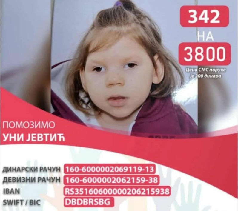 Humanitarna akcija za malu Unu Jevtić iz Šuljma