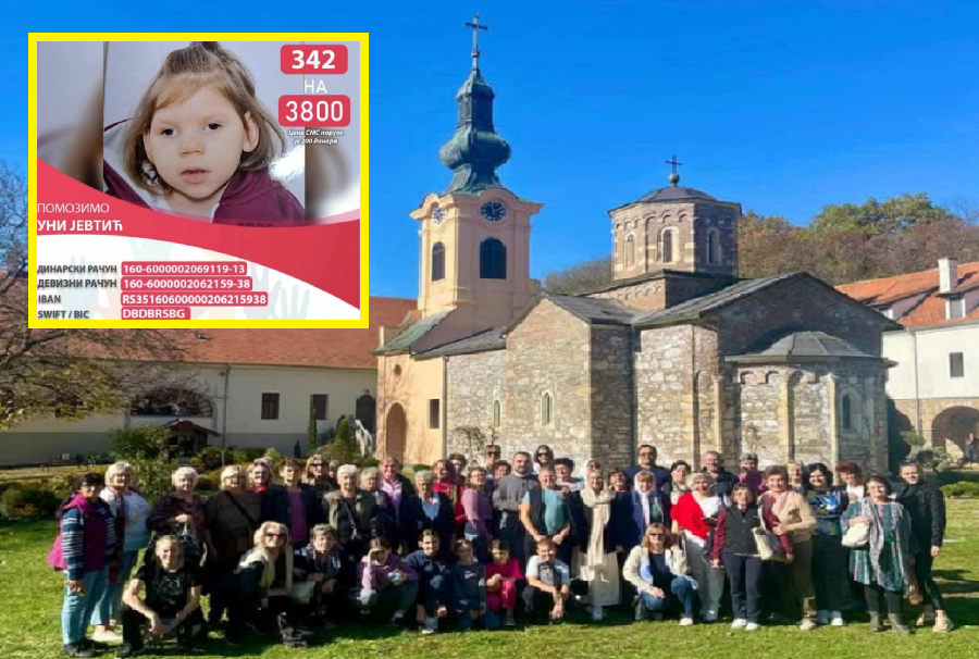 Na pokloničkom putovanju koje je parohija Srpske pravoslavne crkve u Bešenovi, na čelu sa sveštenikom Nemanjom Selakovićem organizovala početkom novembra, prikupljeno je 162.000 dinara koji su predati porodici Jevtić iz Šuljma za lečenje njihove trogodišnje Une.
