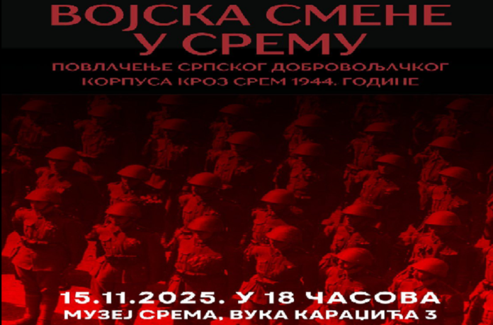 Kako su najavili iz mitrovačkog Muzeja Srema u subotu, 15. novembra, u 18 časova, biće otvorena izložba pod nazivom „Vojska smene u Sremu – Povlačenje Srpskog dobrovoljačkog korpusa kroz Srem 1944. godine“.