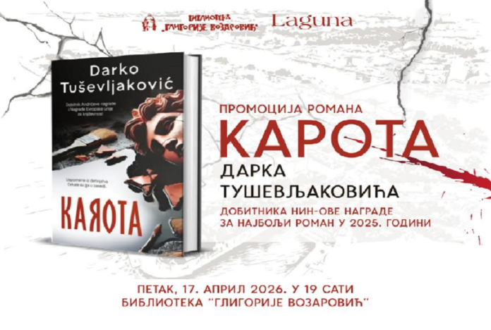 Promocija romana „Karota“ Darka Tuševljakovića, dobitnika NIN-ove nagrade za najbolji roman u 2025. godini održaće se u mitrovačkoj Biblioteci „Gligorije Vozarović“.