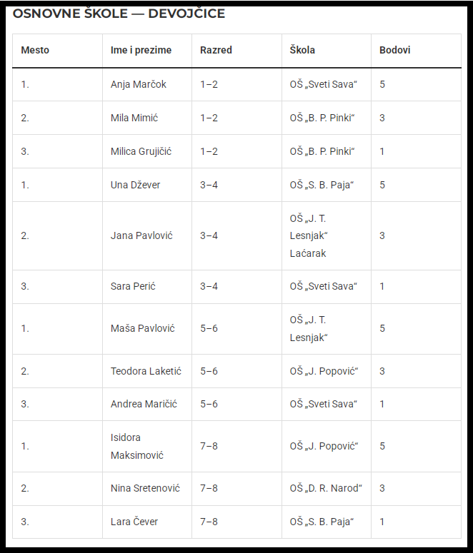 Osnovne škole — devojčice: OŠ Triva Vitasović Lebarnik Laćarak