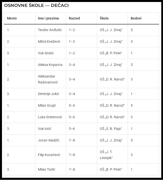 Osnovne škole — dečaci: OŠ Jovan Jovanović Zmaj