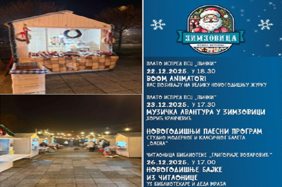 Praznična atmosfera u Sremskoj Mitrovici započela je sa prvim delom novogodišnjeg programa u centru grada koji je već spreman za praznike – klizalište uveliko radipraznične kućice su postavljene, a centralni plato ispred PSC „Pinki“ postaje glavno mesto okupljanja građana svih generacija.