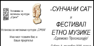 Ustanova za negovanje kulture „Srem“ priređuje promociju 32. broja časopisa za nauku, umetnost i kulturu „Sunčani sat“, kao i na Festival etno muzike „Sremsko...